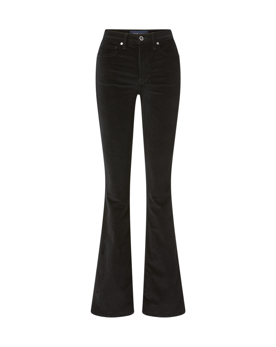 Product details The best-selling Beverly is back, now updated in soft and sumptuous cotton velvet—with stretch for ease. Everything else you love about the made-in-LA style remains the same—from the high-rise to the skinny-flare pant silhouette that gives you legs for days. Pair these black velvet flares with a turtleneck, a dickey jacket and platform clogs for a classic VB look. - 52% Cotton, 39% Modal, 7% Polyester, 2% Spandex - Made in LA - Turn jeans inside out and machine wash on cold - Style #J23105270644BK