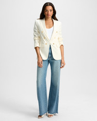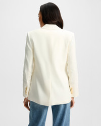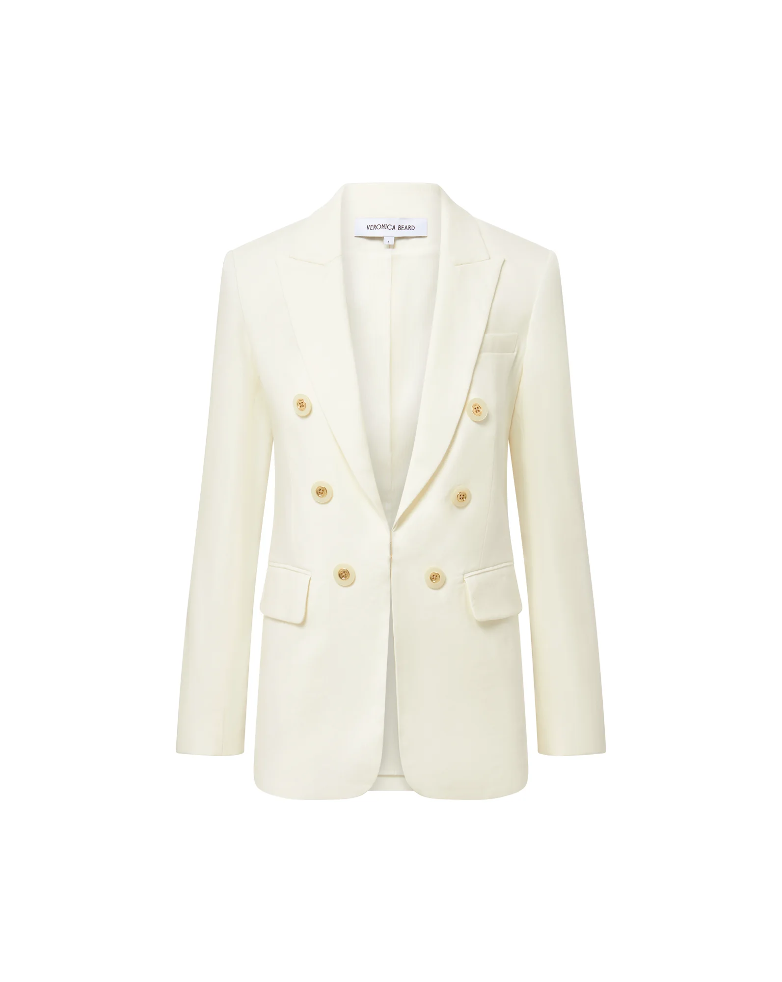 Product details The summer-weight blazer you need. Expertly tailored from Italian stretch linen, the Bexley dickey jacket is the ultimate in effortless chic. With an elongated, fluid silhouette and thoughtful construction, this double-breasted style—in cool, crisp white—is a versatile closet hero. Pair with jeans and heels for our tried-and-true VB uniform and zip in a dickey for more styling options. - 55% Linen, 42% Viscose, 3% Elastane - Lining: 95% Polyester, 5% Elastane - Fabric country of origin: Italy - Made in USA - Dry clean only - Style #2505LN451540