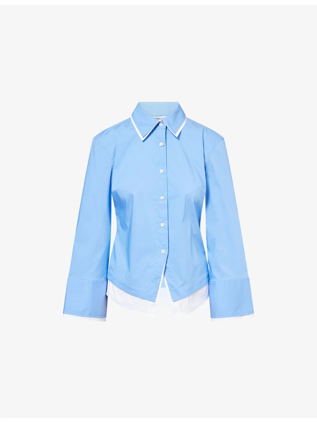PRODUCT DETAILS - Veronica Beard cotton shirt - 67% cotton, 30% polyamide, 3% elastane - Exposed button fastening at front - Regular fit, pointed collar, long sleeves, buttoned cuffs, fitted waist, split hem, contrast underlay at trims and collar - Dry clean - True to size - Model is 5ft 10in/1.78m and wears a size UK 8 - Lightweight, slight stretch Ref: R04568310