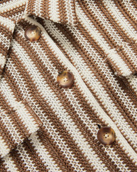 Product details The ease of a knit, the polish of a button-down shirt. Spun from a lightweight stretch knit, the Bouvier top features a cropped, boxy fit, and bold white and brown stripes. A trim collar, front chest pockets, and tortoiseshell buttons complete the look. Style with the coordinating Zosia pant for a matching set that's equal parts effortless and chic. - 100% Polyester - Closure: Buttons - Turn inside out and machine wash cold. Tumble dry on low. - Style #J2506JY174T0439