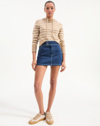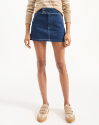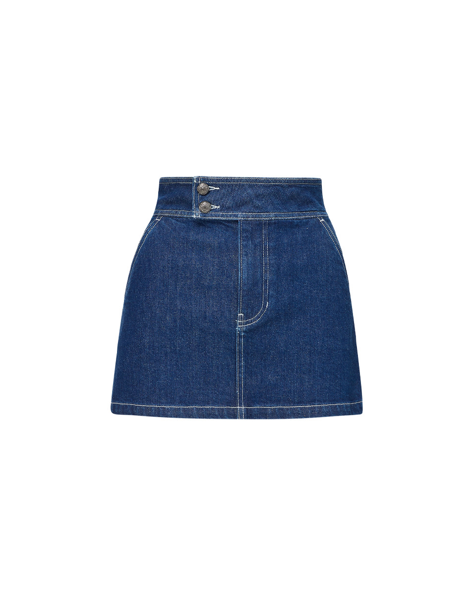 Product details The ease of denim in a chic little mini. Made from Italian stretch cotton, the Bowen skirt features a wide, double-button waistband, slim side pockets and contrast-color topstitching. Pair with the Alfie jacket for a chic take on double denim. - 98% Cotton, 2% Elastane - Unlined - Fabric country of origin: Italy - Turn inside out and machine wash cold. Hang to dry. - Style #J25027210101ID
