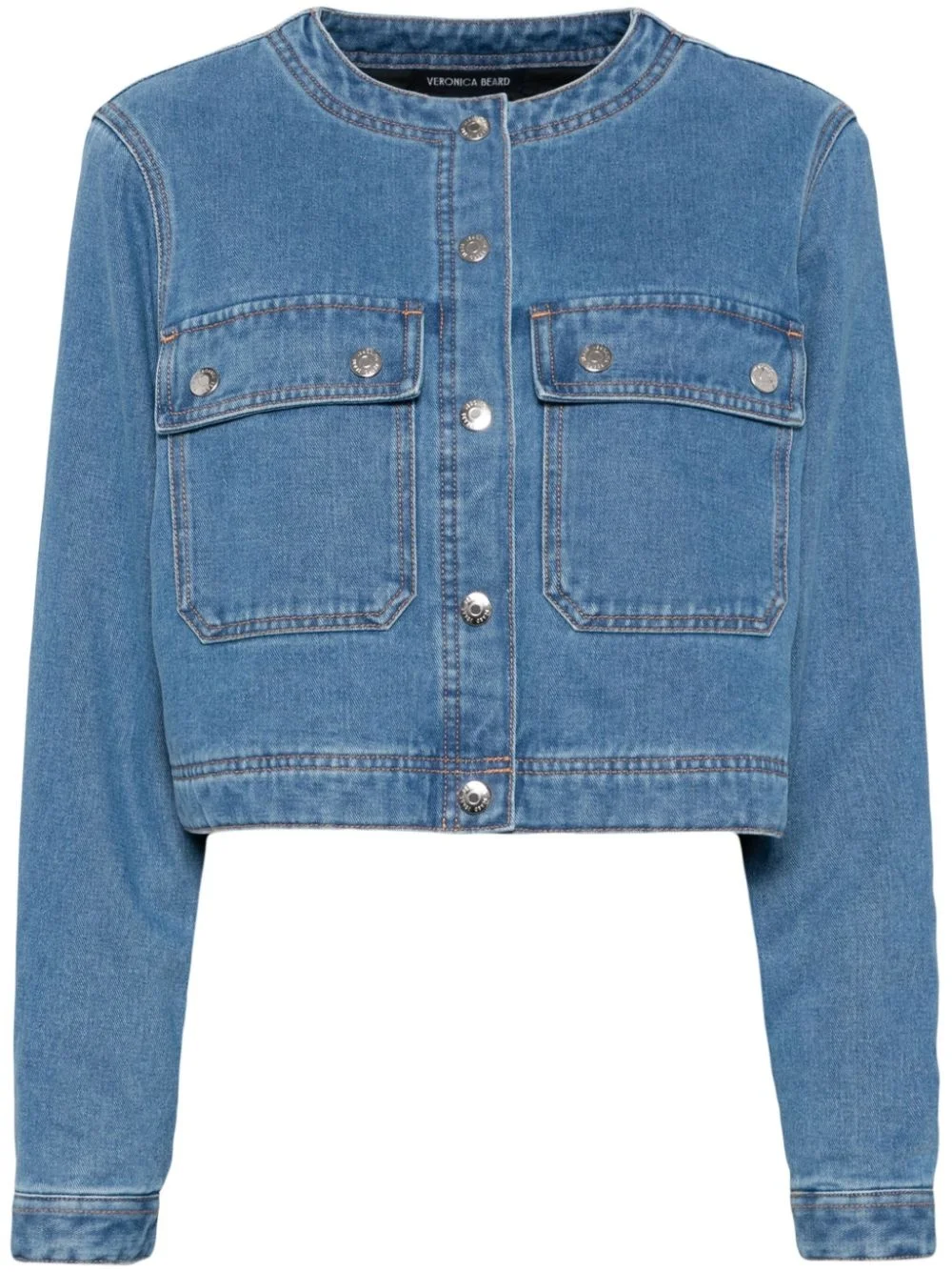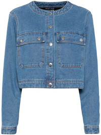 denim jacket Highlights - Bright blue - Cotton blend - Front press-stud fastening - Two button-fastening chest pockets - Round neck - Long sleeves - Buttoned cuffs - Cropped Imported Composition Cotton 100%
