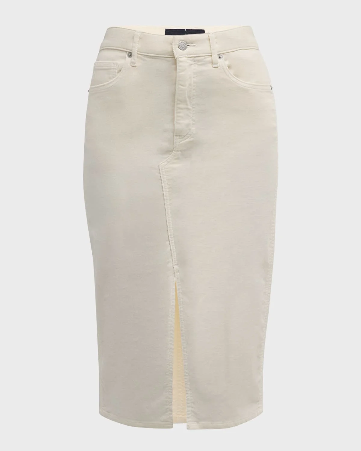 Veronica Beard "Breves" midi skirt in corduroy High rise Fivepocket style Skirt falls straight from hip to hem Front center slit Button/zip fly; belt loops Cotton/spandex Wash inside out Made in USA from imported materials