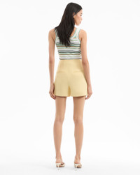 Product details The essential tailored short. Made from Italian stretch linen, the Elbe in butter yellow features a clean, flat-front silhouette for easy styling. Pair with a simple knit or tank top for laid-back ease or, for a more polished look, pair with the matching Miller dickey jacket for a chic summer suiting. - 55% Linen, 44% Viscose, 1% Elastane - Lining: 100% Polyester - Fabric country of origin: Italy - Dry clean only - Style #2505LN3380321