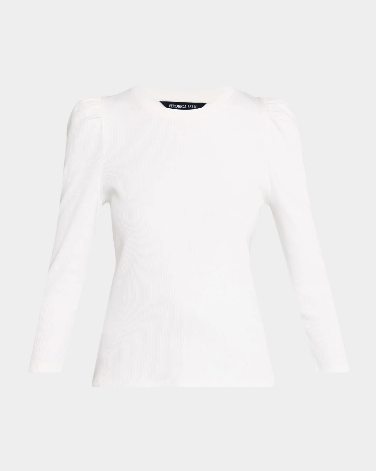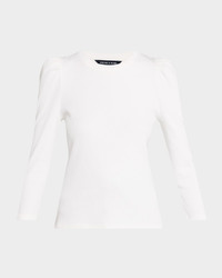 Veronica Beard Jeans "Britney" top in stretch cotton Crew neckline Bracelet puff sleeves Easy fit Hem sits at the hip Pullover style Cotton/elastane Machine wash inside out, line dry Imported