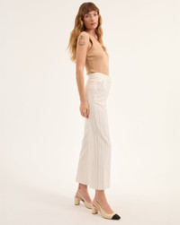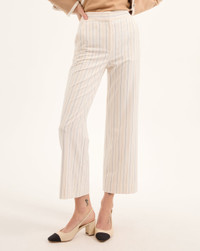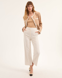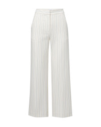 Product details Expertly tailored from a premium stretch blend, the Brixton will be a timeless addition to your wardrobe, thanks to its high-rise, wide-leg cropped silhouette that's always flattering. The slightly cropped length highlights your footwear, too. Pair with the coordinating Battista jacket for cool take on pinstriped suiting. - 67% Polyester, 29% Viscose, 4% Elastane - Lining: 100% Polyester - Made in USA - Dry clean only - Style #2411ST3060429