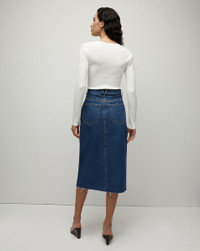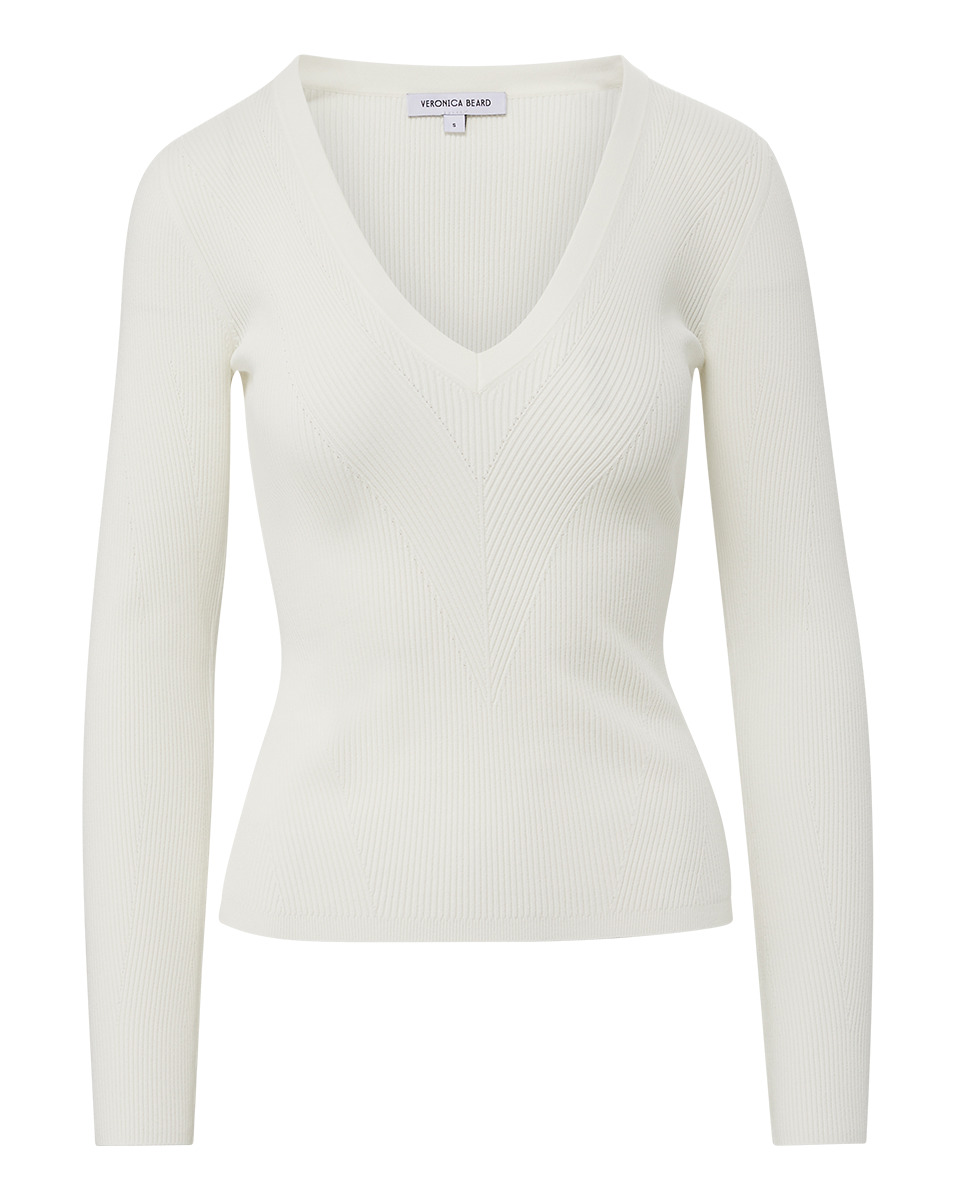 The Callie is a versatile staple that goes easily from day to night. A ribbed-knit with a hint of stretch, it flatters every time. Its slim-fit design is complemented by a V-neck and strategic ribbing to contour the body. A lightweight basic that makes your body look its best—a true closet must-have. DETAILS & FIT - 83% Viscose, 17% Polyester - Sleeve length 30” | Length 23”, based on a size S - Our model is 5'10" and is wearing a size S - Professional dry clean only - Style #2402KS1290328
