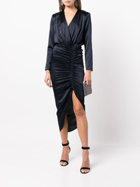 Cameri ruched long-sleeve midi dress navy blue silk blend ruched bodice V-neck long sleeves asymmetric hem Imported Composition Silk 92%, Elastane 8% SIZE & FIT Model measurements Height 5 ft 10 in(1.77 m) Bust/Chest 33.85 in(86 cm) Hips 35.03 in(89 cm) Waist 24.01 in(61 cm) Measurement WAIST 27.16 in(69 cm) HIPS 31.1 in(79 cm) FittingInformation This piece fits large – you might want to get one size down Designed for a close fit at the bust, waist and hips Made with a lightweight fabric