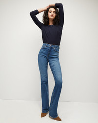Meet Cameron, our classic high-rise, boot-cut jean—now with a raw hem. In a classic medium wash, this Nineties throwback style is fitted through the hips and thighs with a slight flare at the ankle. Made in LA with premium Italian denim, this jean offers you a flattering fit and a quick recovery. Wear with sweaters, tees, blouses—you name it. DETAILS & FIT - 92% Cotton, 6% Elastomultiester, 2% Elastane - Rise 11" | Inseam 32" | Leg opening 18 1/2", based on size 26 - Our model is 5'10 and is wearing a size 26 - Premium Italian denim - Made in LA - Machine wash cold - Style #J23064851259SY - Rigid - Comfort Stretch - Stretch