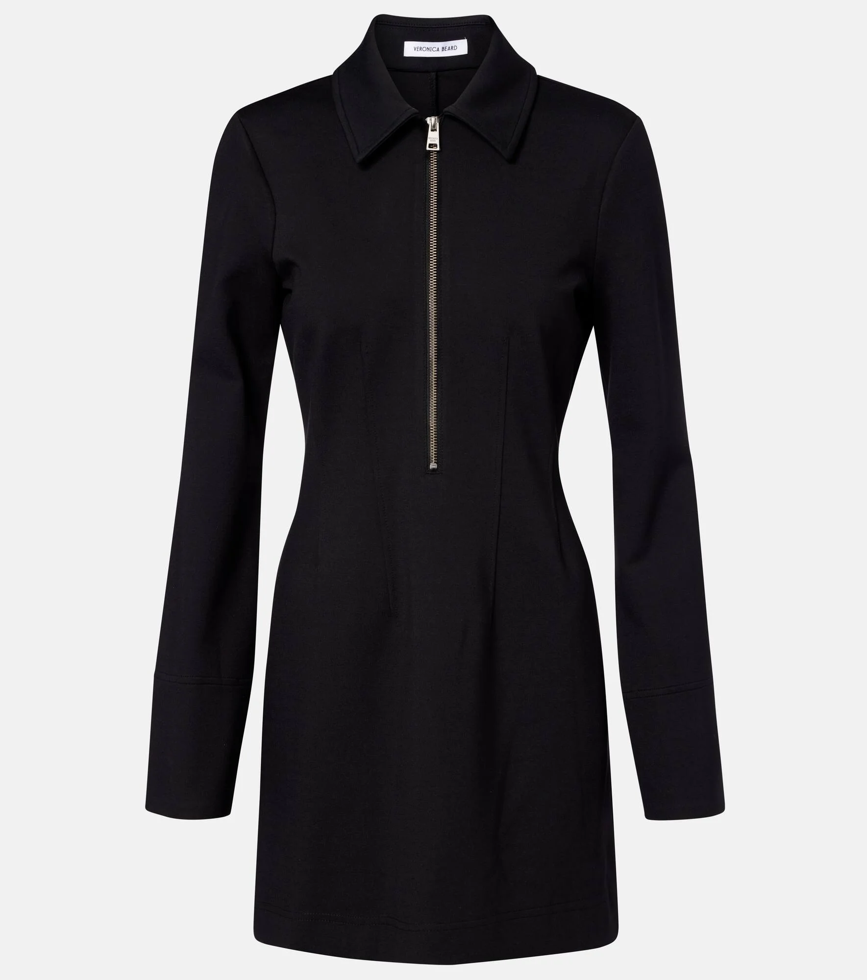 Veronica Beard's low-effort, high-impact separates find the perfect balance between casual and chic. The epitome of sporty stylish, the Capelle minidress features a partially zipped front, shirting collar, and A-line skirt. Product Details - Material: 68% viscose, 28% polyamide, 4% elastane - Care instructions: dry clean - Made in the USA - Color: black - Designer color name: Black - Collar: classic (Straight point) - Closure: partially zipped front - Item number: P01142630 Size & Fit - True to size - Cinched waist - Slightly stretchy fabric - The model seen in the picture is 178cm-5'10" and wearing a size US 4