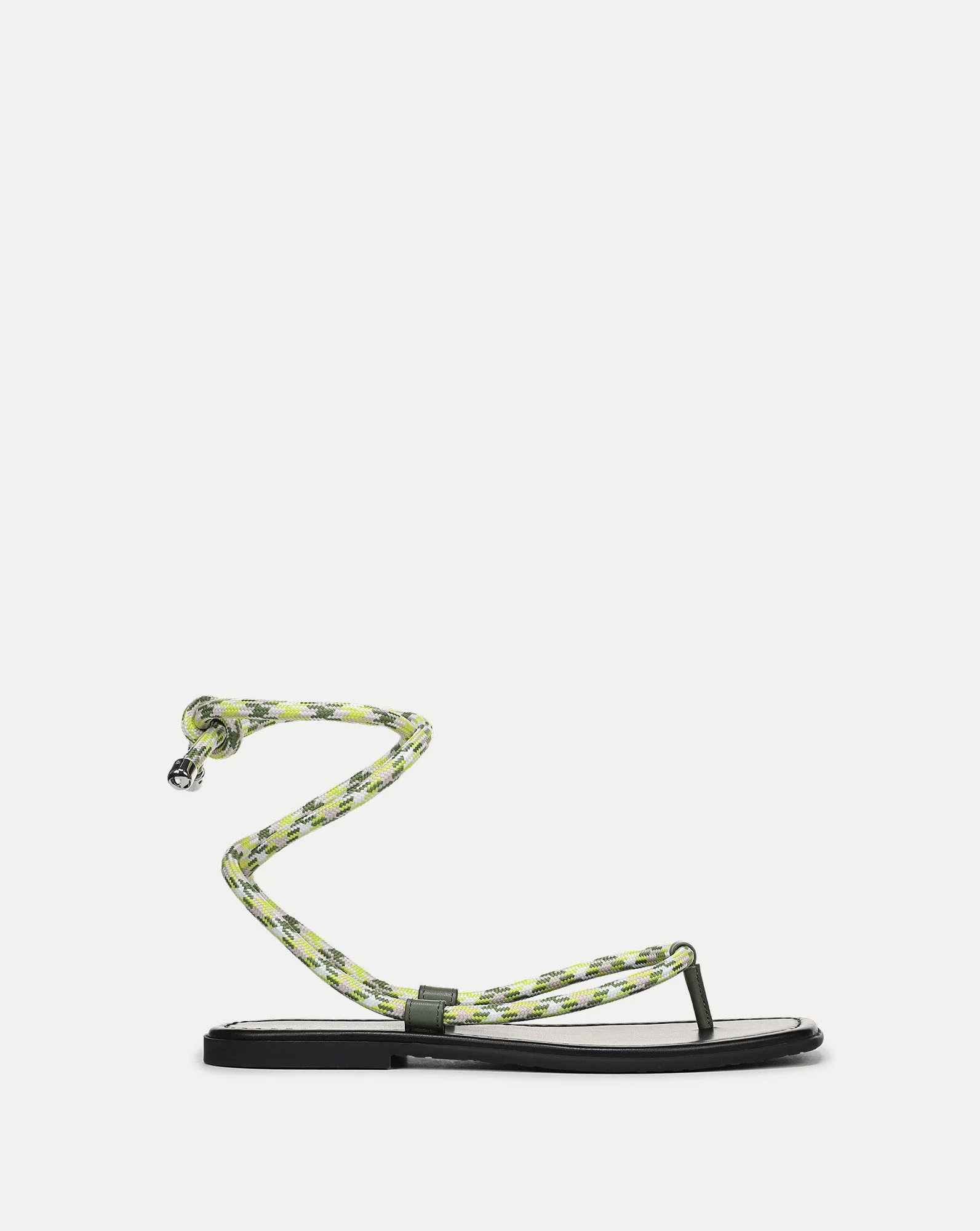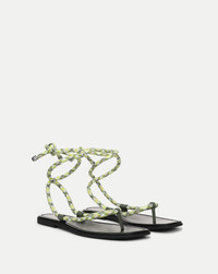 Product details The perfect vacation shoe. The Carmina reimagines the thong sandal with vibrant green rope straps that elegantly wrap around the ankle. Made from sport-inspired cording, they provide stable, secure support while the elongated toe post and leather footbed ensure all-day comfort. Keep the styling simple by pairing with a sundress or a shorts set. - Leather and Polyester Cord - Lining: Leather - Store in a cool, dry place inside a dust bag - Clean under the supervision of a specialist - Style #J5001F3301