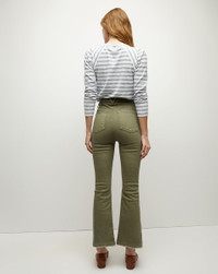 Product details Meet the Carson, our classic high-rise flare, updated in an army-green wash and a let-down hem. Made in LA with premium Japanese stretch denim, this VB favorite features a slim fit and slightly cropped length that suits sneakers and heels alike. - 91% Cotton, 7% Polyester, 2% Polyurethane - Premium Japanese denim - Made in LA - Turn inside out and machine wash cold. Hang to dry. - Style #J24064461037SA