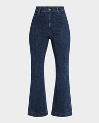 Veronica Beard Jeans "Carson" jeans in rhinestoneembellished darkwash denim Approx. 11.5" rise; 28" inseam High rise Fivepocket style Fitted through hip; flared from knee Cropped at the ankle Button/zip fly; belt loops Cotton Wash inside out Imported