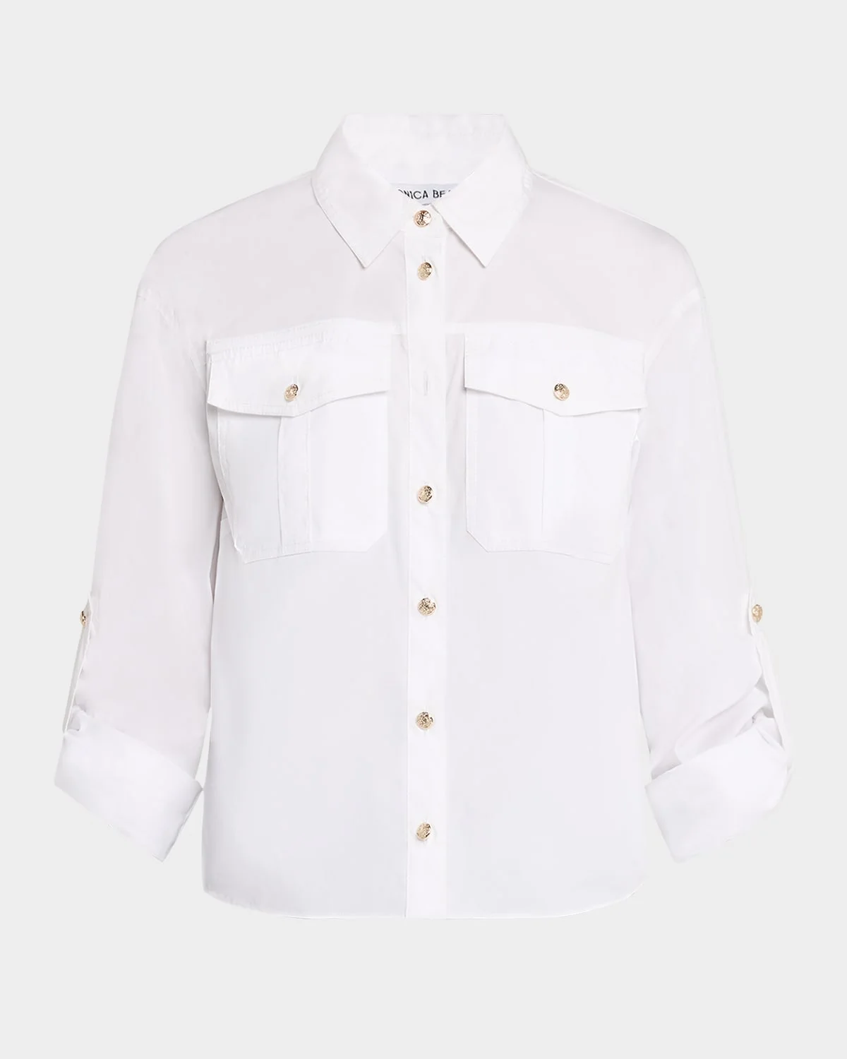 - Veronica Beard "Catriona" crisp shirt finished with gold-tone buttons - Point collar - Long sleeves with button tab cuffs - Dual chest pockets - Classic fit - Hem sits at the hip - Button-front - Polyester - Dry clean - Imported