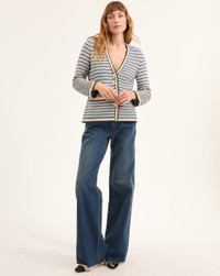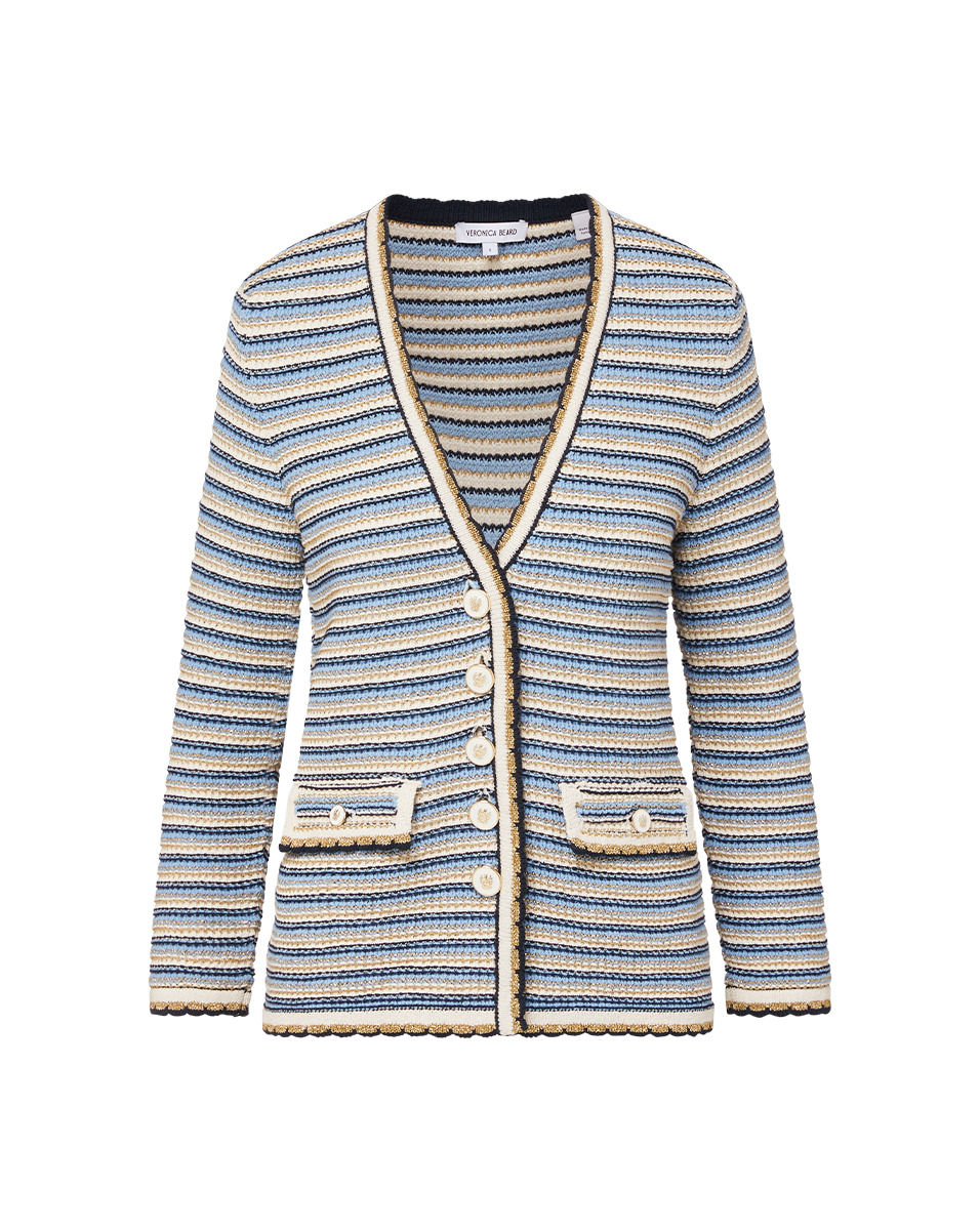 Product details The ease of a cardigan, the polish of a jacket. Spun from Italian stretch cotton, the Ceriani boasts a deep-V neckline, an elongated silhouette, multicolor stripes and a scalloped hem. Flap pockets and enamel crest buttons complete the look. Wear with straight-leg pants and heels for the office, jeans and sandals for the weekend. - 78% Cotton, 22% Polyamide - Fabric country of origin: Italy - Dry clean only - Style #2412KC3790417