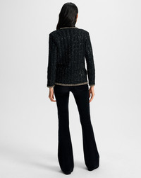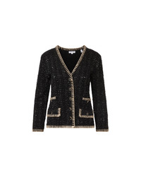 Product details The ease of a cardigan, the polish of a jacket. Crafted from a black tweed knit, the Ceriani features a deep V-neckline, bezel-style buttons, flap pockets, and contrast metallic blanket stitching along the trim. Perfectly polished yet versatile, it pairs just as well with an LBD as it does with jeans. - 52% Viscose, 40% Polyester, 7% Nylon, 1% Metallized Fiber - Dry clean only - Style #2510KS5790417