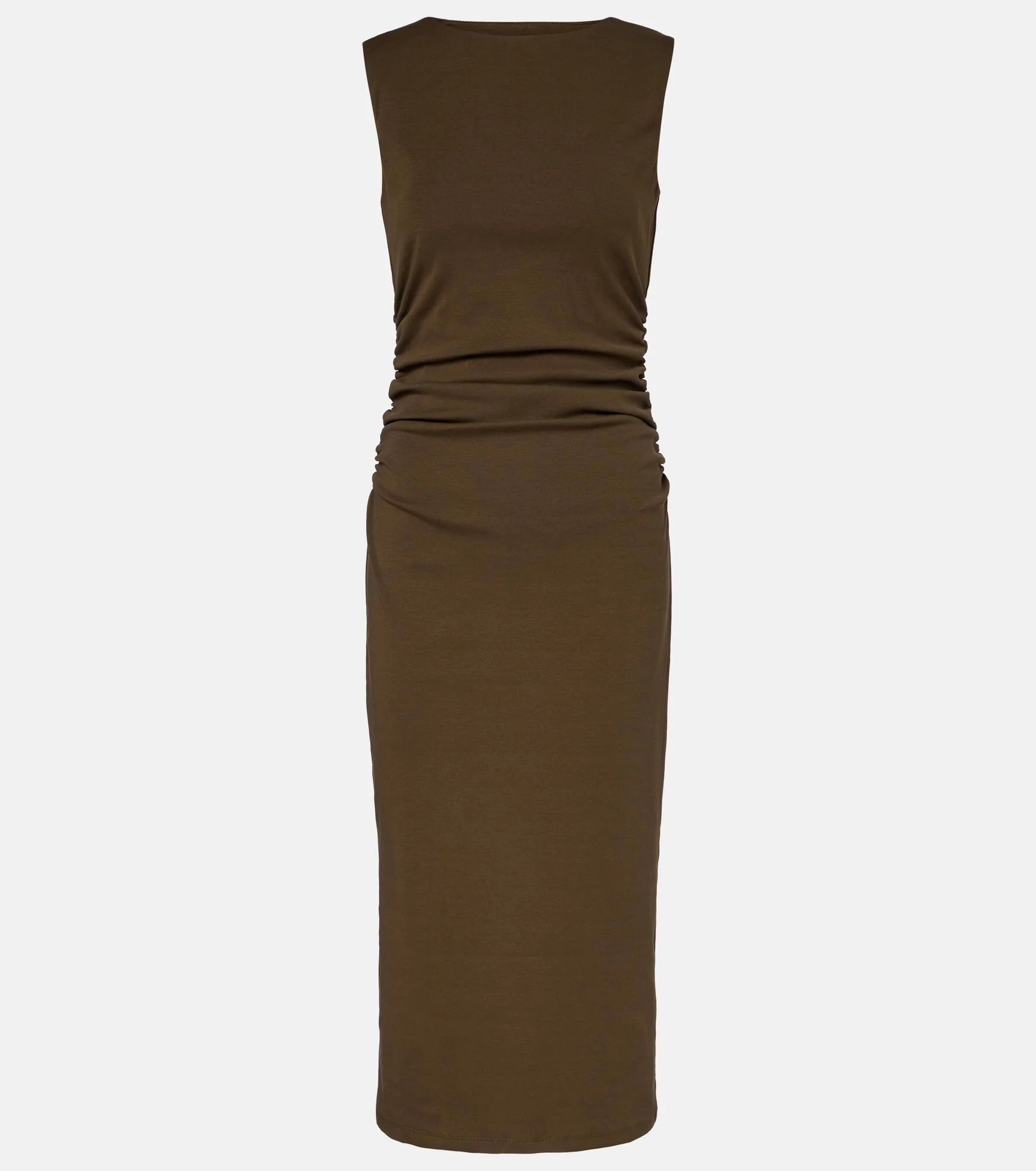 Crafted from a soft cotton blend, the Charissa midi dress from Veronica Beard feels as comfortable as it looks chic. This style is rendered in an olive green hue and features a flattering silhouette with side ruching and an elegant boat neckline. Product Details - Material: 92% cotton, 8% elastane - Care instructions: machine wash at 30 degrees - Made in Vietnam - Designer color name: Cypress - Item color: brown - Item number: P01096286 Size & Fit - True to size - Fitted - Slightly stretchy fabric - The model seen in the picture is 178cm-5'10" and wearing a size XS