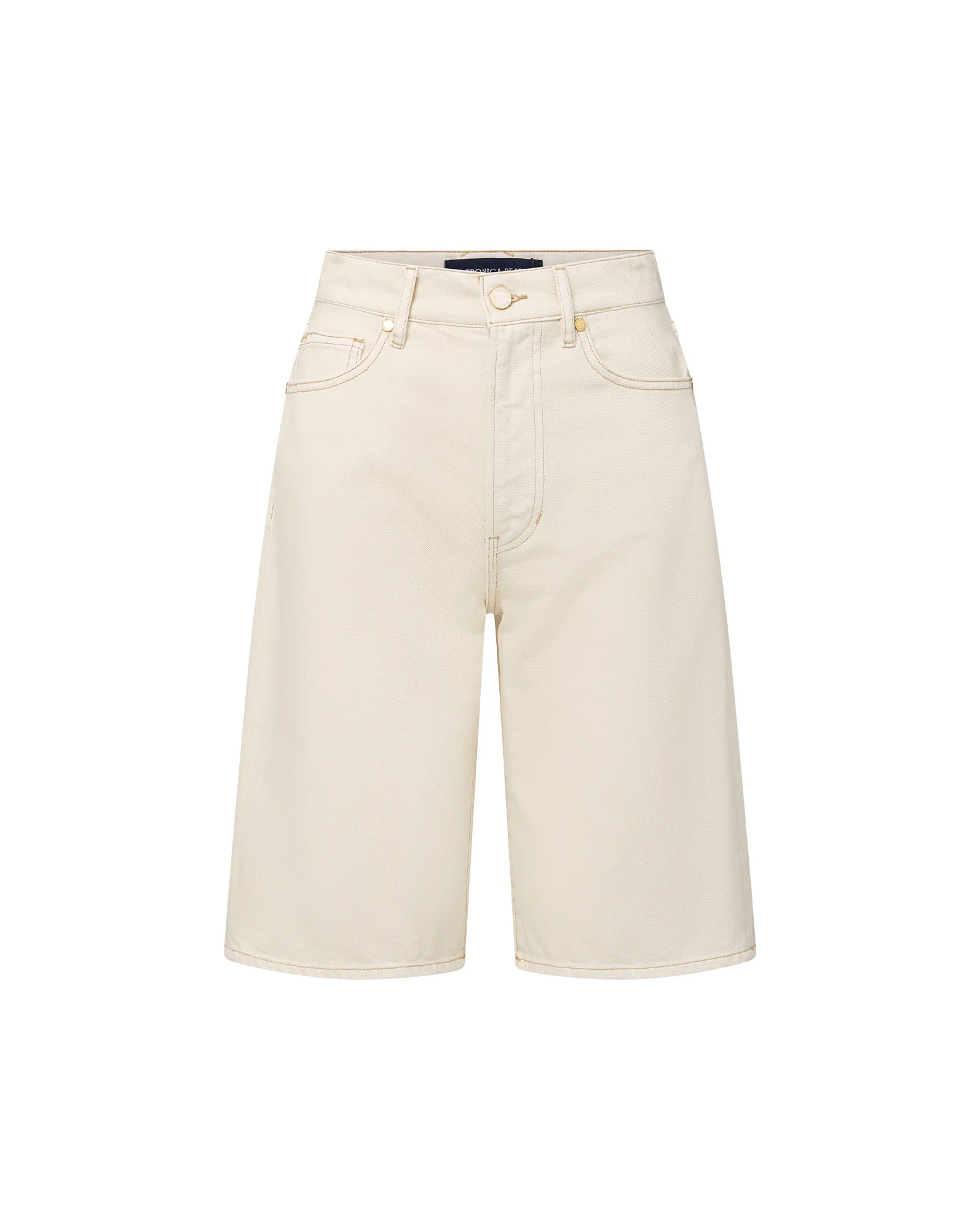 Product details The Bermuda short, reimagined. We elevated the summer staple with jean-like construction: non-stretch denim, a classic five-pocket design, and our signature V-shape belt loop in the back, which nods to the Veronica Beard logo. A timeless warm-weather essential in summer-ready ecru, it's the ultimate in versatility. Go boardwalk casual with a simple tee and sandals or, for preppy polish, wear with a crisp button-down, blazer and flats. - 100% Cotton - Closure: Button and fly zip - Turn inside out and machine wash cold. Hang to dry. Color transfer may occur. - Style #J2506D140100EC