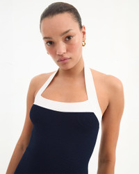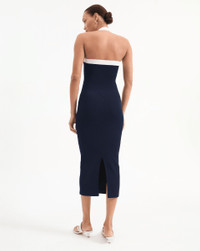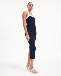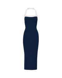 Product details Turn heads in the Christa, the night-out dress everyone needs in their closet. Crafted from a heavyweight stretch-knit blend, this sleek bodycon midi dress hugs the body for a flattering, close fit. Hitting at the mid-calf, it's thoughtfully designed with a back vent for ease, while a seamless, contrast halter strap completes the look. Throw on a strappy heel, and you're ready to take on the night. - 83% Viscose, 17% Polyester - Dry clean only - Style #2503KS1290563