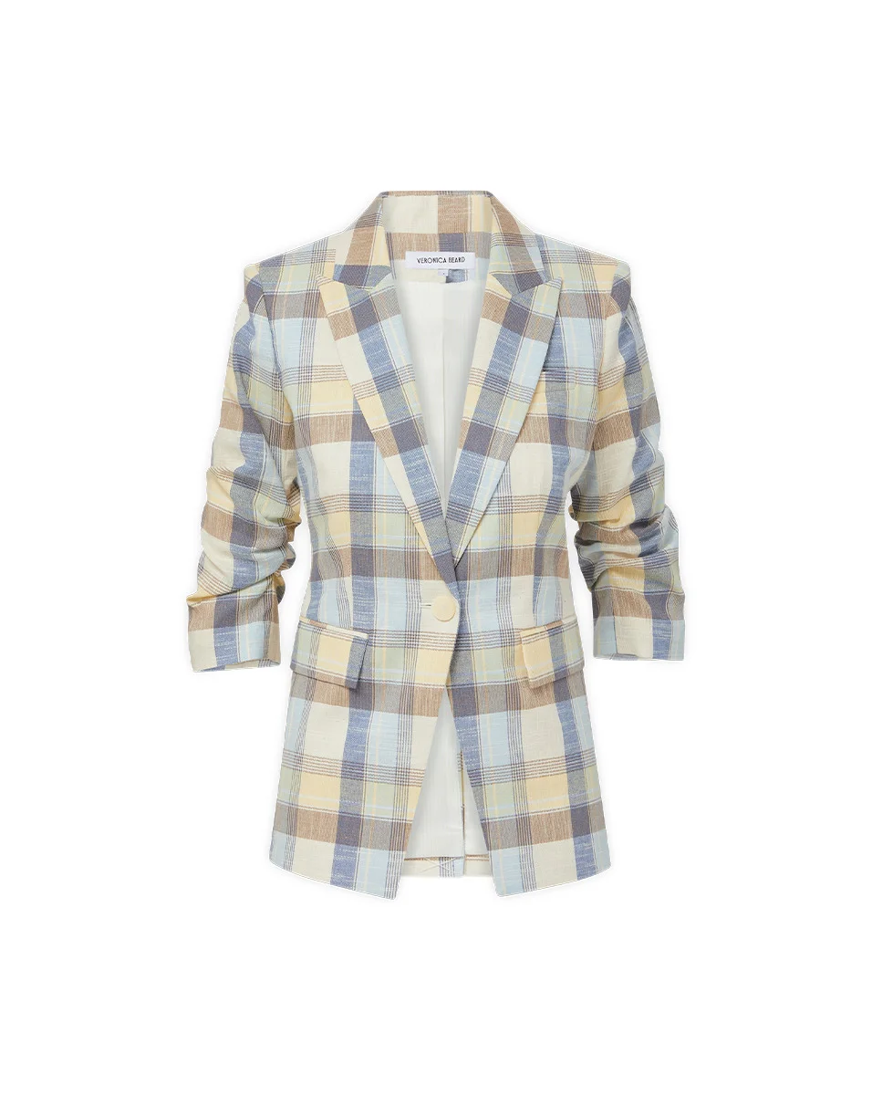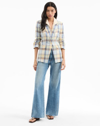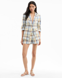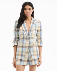 Product details Expertly tailored from an Italian stretch cotton, the Clayton dickey jacket is a single-breasted blazer with an elongated, straight fit and a summer-ready plaid in pale blue, cream, and yellow. Flap pockets and a back vent complete the look. Pair with off-white jeans or shorts for weekends and wanderlust—or wear with the coordinating Allen short for a chic summer set. Switch it up with a dickey for even more styling options. - 88% Cotton, 11% Polyester, 1% Elastane - Lining: 95% Polyester, 5% Spandex Taffeta - Fabric country of origin: Italy - Dry clean only, with buttons covered - Style #2505PL7811308