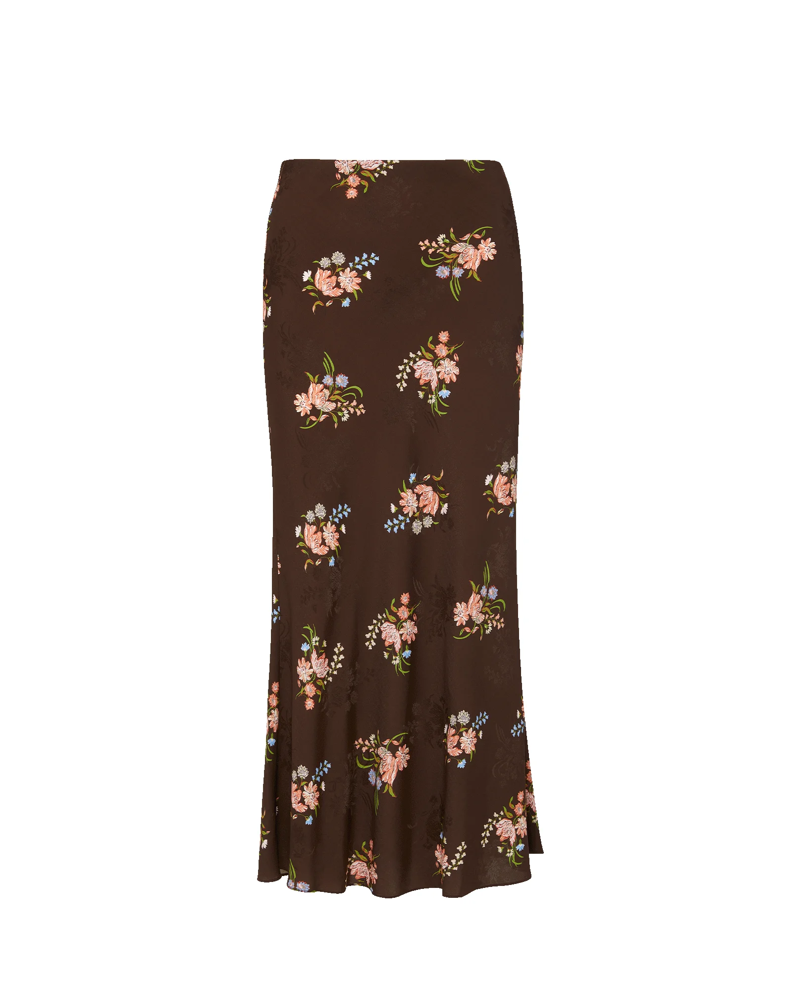 Product details The slip skirt every wardrobe needs. Crafted from a premium silk-stretch blend, the Clover midi skirt falls to the mid-calf with fluid, easy movement. In warm brown featuring a custom floral bouquet print, it’s the piece you’ll reach for all season long. Style with a simple tee and sandals for an elevated day look. - 52% Silk, 38% Viscose, 10% Elastane - Dry clean only - Style #2604FL7930374