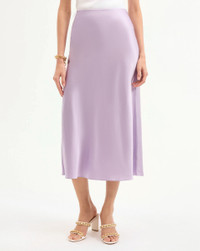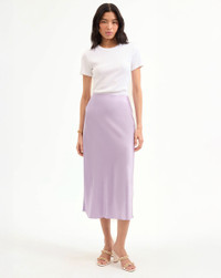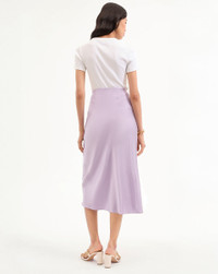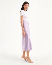 Product details A Nineties-inspired silhouette that feels thoroughly modern, our Clover slip skirt, in soft lilac, will be a versatile addition to your wardrobe. Crafted from stretch silk, the minimalist style features a flattering, fluid drape, and chic midi silhouette—complete with a zip closure for ease. Pair with a t-shirt to elevate the everyday or with the matching Sola tank for an elegant trompe l'oeil dress. - 53% Silk, 35% Viscose, 12% Elastane - Unlined - Dry clean only - Style #2504FL5030374