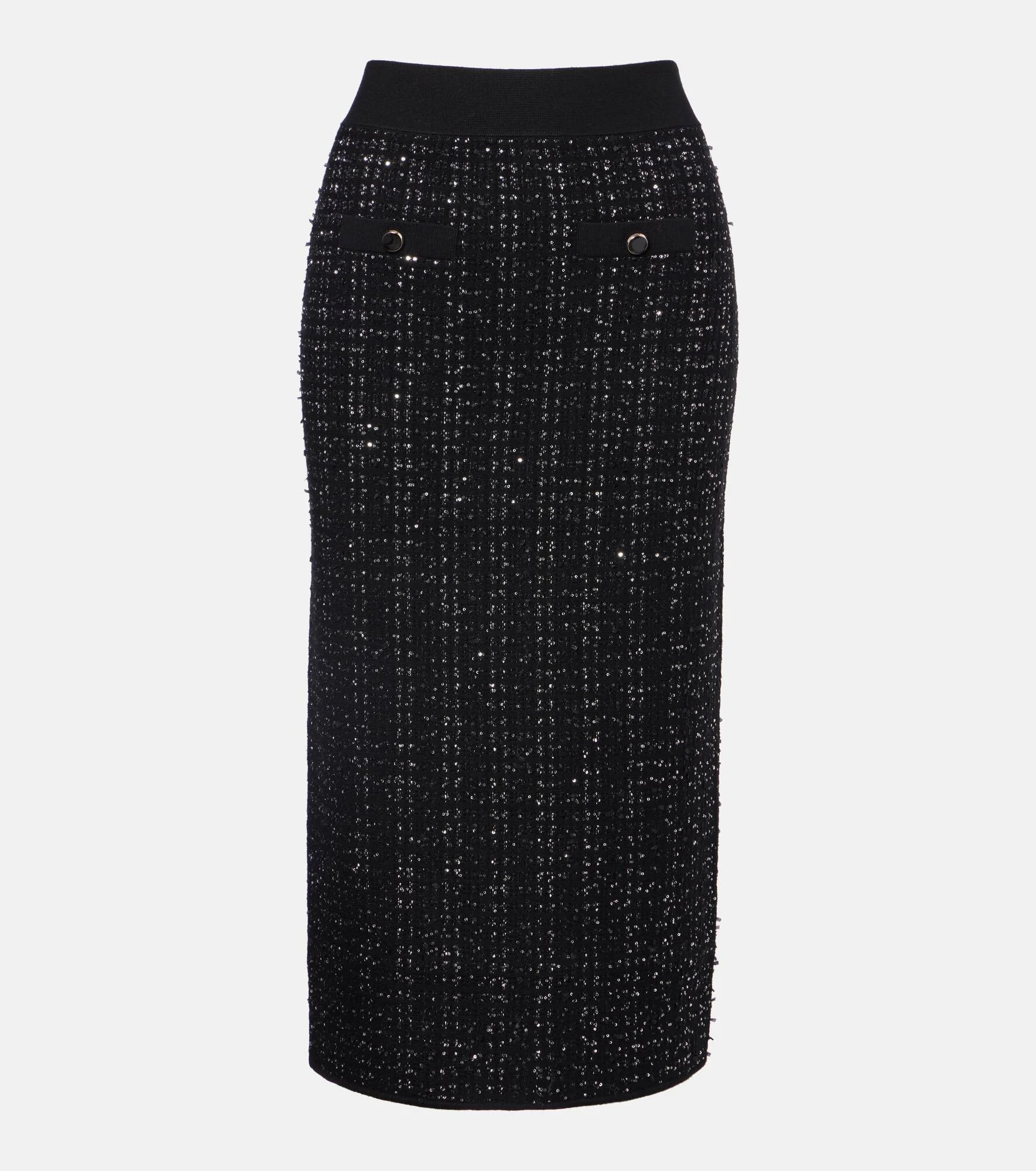 Veronica Beard's low-effort, high-impact separates find the perfect balance between casual and chic. The Corbin midi skirt is crafted from a flexible tweed and is complete with a subtly elasticated waistband. Product Details - Material: 48% viscose, 43% polyester, 9% polyamide - Care instructions: dry clean - Made in China - Designer color name: Black - Item color: black - Elasticated waistband - Short vent - Item number: P01113804 Size & Fit - True to size - Fitted - Elasticated waist - Stretchy fabric - slit length 21,5cm-8.5" - The model seen in the picture is 178cm-5'10" and wearing a size XS