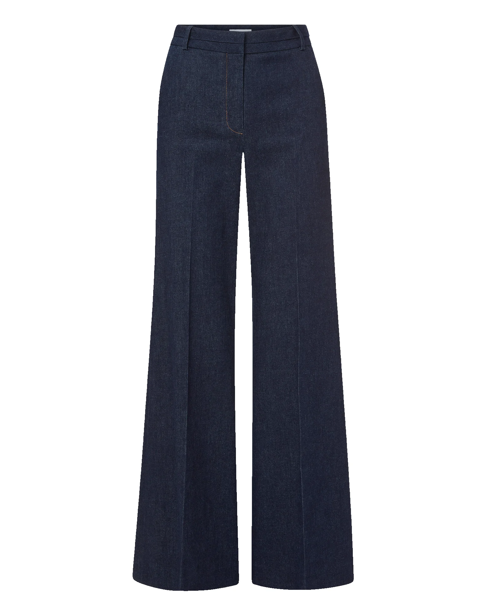 Product details The polish of trousers meets the edge of dark-wash denim. Crafted from our signature Stretch Denim Tailoring, the Crue features an exaggerated wide-leg silhouette and shaping back darts for a flattering fit. A high, layered waistband with a flat hook-and-bar closure, side slant pockets, and back welt pockets complete the look. Tuck in your favorite blouse and pair with the Barrington jacket for an elevated take on double denim. - 75% Cotton, 23% Polyester, 2% Elastane - Dry clean only - Style #2512NV2660850