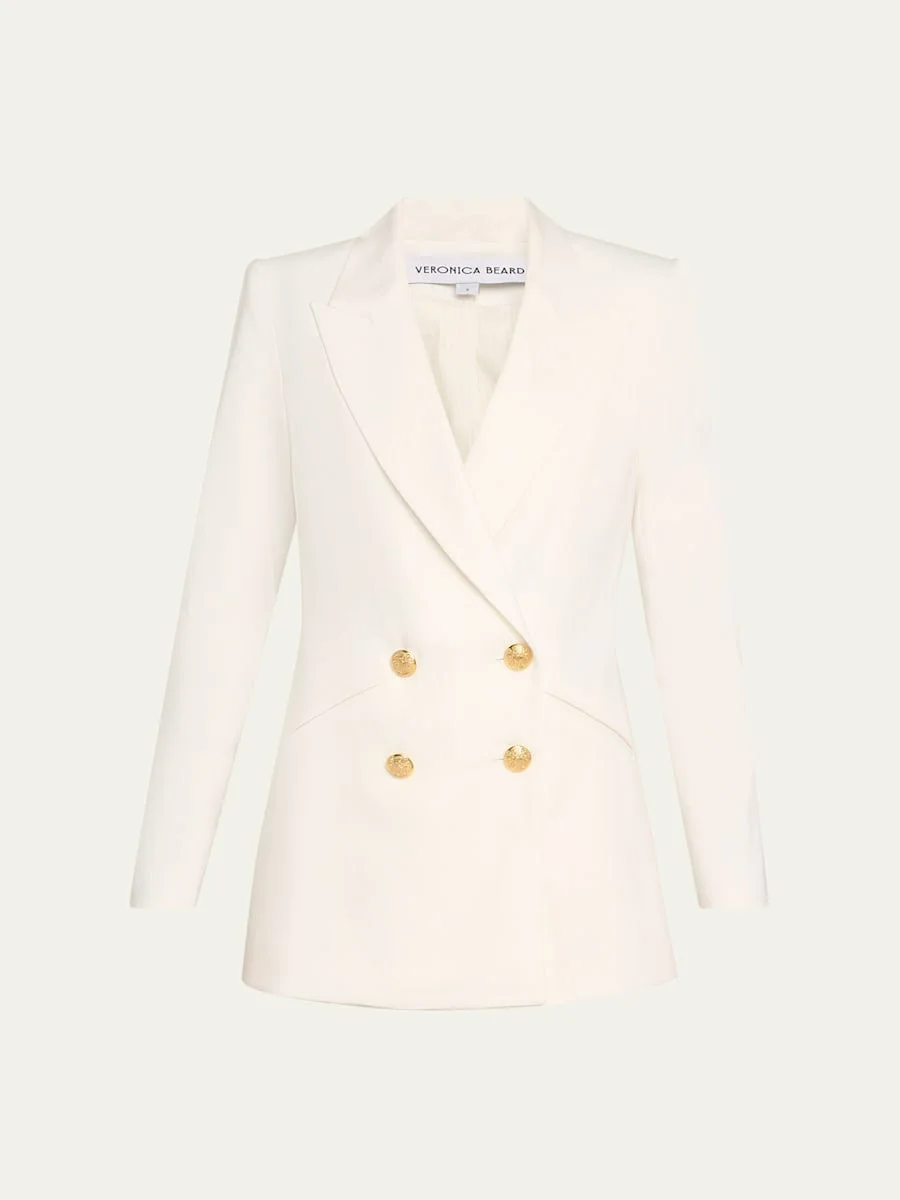 Veronica Beard "Dale" linenblend dickey jacket Compatible with Veronica Beard dickey's (sold separately) Peak lapels Doublebreasted front Long sleeves with button cuffs Chest and hip welt pockets Tailored fit Doublevented back Buttonfront Linen/polyester/viscose Made in USA