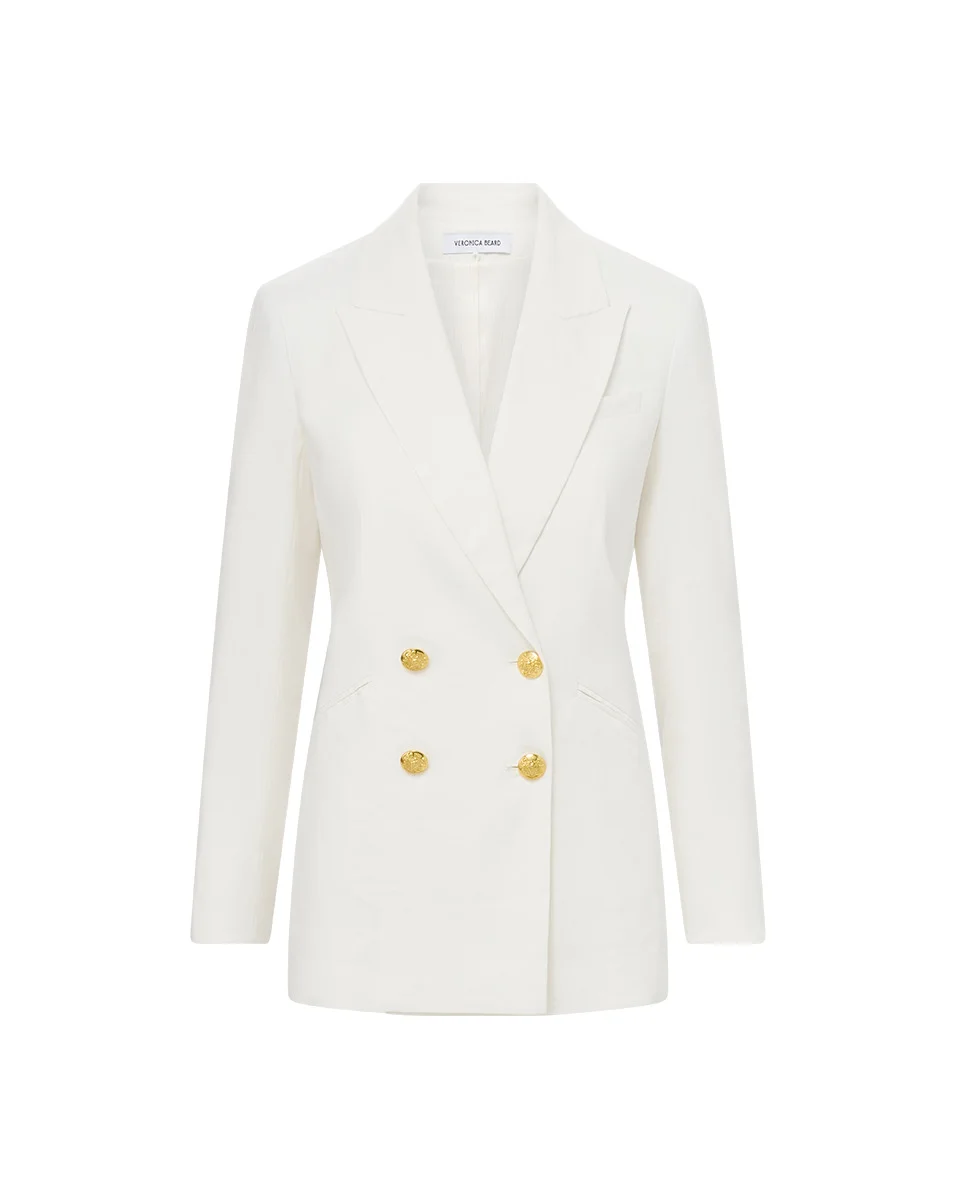 Product details Made in the US from premium stretch linen, the Dale boasts a relaxed, boxy fit and a perfectly oversized silhouette. Discreet slash pockets and a wide peak lapel complete the look. Pair with the matching Jude pant for an effortless power suit. - 53% Linen, 29% Polyester, 16% Viscose, 2% Elastane - Lining: 95% Polyester, 5% Elastane - Made in USA - Dry Clean Only - Style #CORESU2111165
