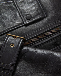 Product details The sleekest way to stay warm. Crafted from 100% lambskin with a shiny, crackled finish and soft beige shearling lining, the Danika is a cold-weather take on the black leather jacket. Cut with a cropped, swing-back silhouette, it features a funnel neck collar with an adjustable neck tab and buckle, front double-entry flap pockets, a buckled sleeve tab, and a two-way zipper for ease. Layer over any of your cold-weather looks for a chic finish - 100% Lambskin Shearling - Lining: 100% Cupro - Professional leather cleaning only - Style #2510LT8170388