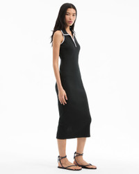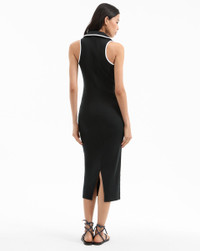 Product details Effortlessly chic and sporty, this body-skimming polo dress is knitted from premium stretch cotton for a perfect fit. The sleeveless, midi silhouette, in black, features white contrast piping along the armholes, collar, and neckline. Pair this versatile go-to with sandals for a laid-back look or dress it up with heels for something more polished. - 96% Cotton, 4% Elastane - Turn inside out and machine wash on gentle cycle. Lay flat to dry. - Style #J2505JY15220967