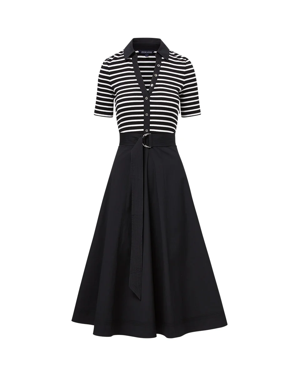 Product details The top: A striped button-down tee. The bottom: a full circle skirt with a D-ring belt. The latest addition to our mixed-media lineup is a one-and-done wardrobe hero that takes the guesswork out of getting dressed. Complete the feminine look with kitten heels or espadrille wedges. - 96% Cotton, 4% Elastane - Unlined - Machine wash cold - Style #J2502JY16121403