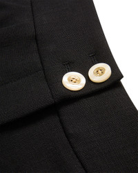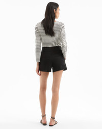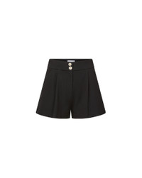 Product details An elevated take on the weekend short. Expertly tailored from a premium stretch blend, the Devina black short features a high waist, side slip pockets, and a chic A-line silhouette. Contrast-color ivory buttons complete the look of this versatile must-have. Pair with tanks, tees, and blazers—this goes with everything and anything. - 98% Viscose, 2% Elastane - Lining: 100% Polyester - Made in USA - Dry clean only - Style #2505SU01880359