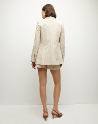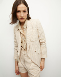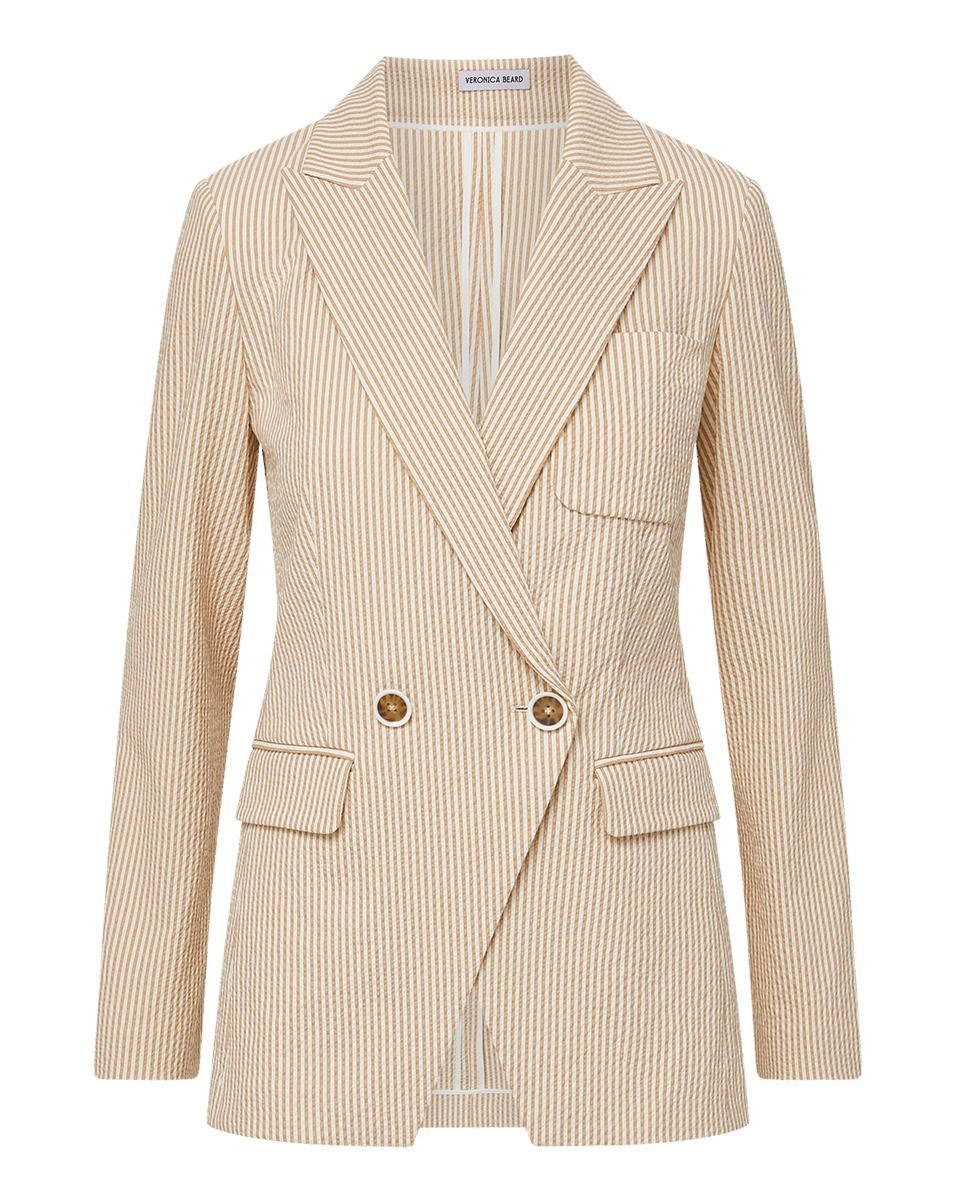 Introducing the Didion, our take on the classic seersucker blazer. Made in the U.S. from a stretch-cotton blend, the single-breasted style is cut for a relaxed fit and features flap pockets, peak lapels and tortoise buttons. Pair it with the matching Hunter pant for a suit that channels summer’s laidback mood. DETAILS & FIT - 98% cotton, 2% elastane - Lining: 100% polyester - Length 28" | Sleeve length 32.25", based on a size 2 - Our model is 5'10" and is wearing a size 2 - Made in USA from Turkish fabric - Dry clean only - Style #2405CO2610720
