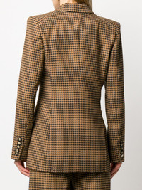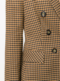 double breasted blazer Camel double breasted blazer from Veronica Beard featuring a double breasted front fastening, a check print, two front pockets and a lining. Made in United States Composition Polyester 69%, Viscose 29%, Elastane 2% SIZE & FIT FittingInformation This piece fits true to size. We recommend you get your regular size Cut for a slim fit Made with a mid-weight fabric Washing instructions Dry Clean Only