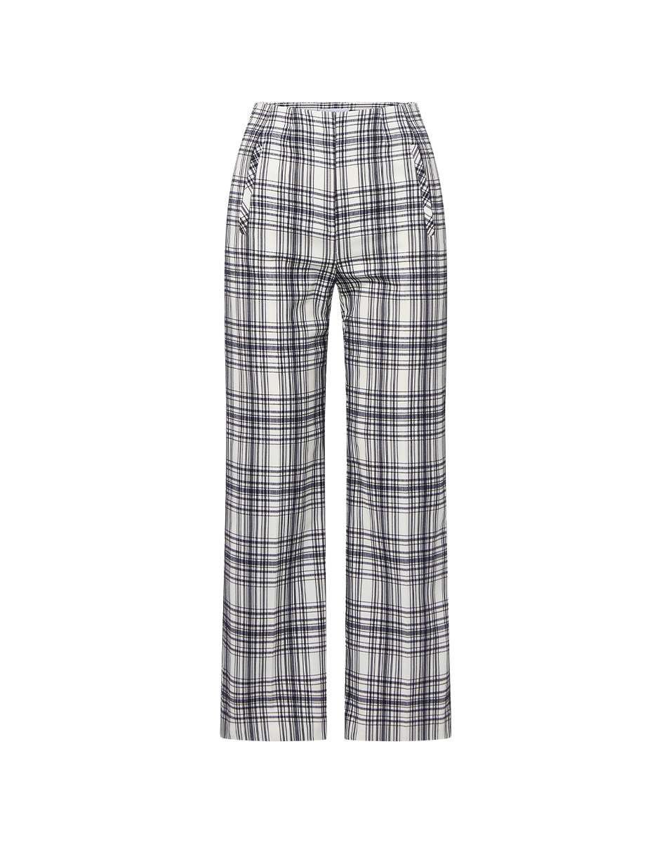 Product details A VB favorite, now updated in a striking plaid pattern. The Dova features a high-rise, wide-leg design, giving you a flattering base to create your look while the cropped silhouette lets you show off your shoes. Pair with the coordinating Tamara vest for a high-impact matching set. - 61% Cotton, 37% Polyester, 2% Elastane - Lining: 100% Polyester - Dry clean only - Style #2411PL0326449
