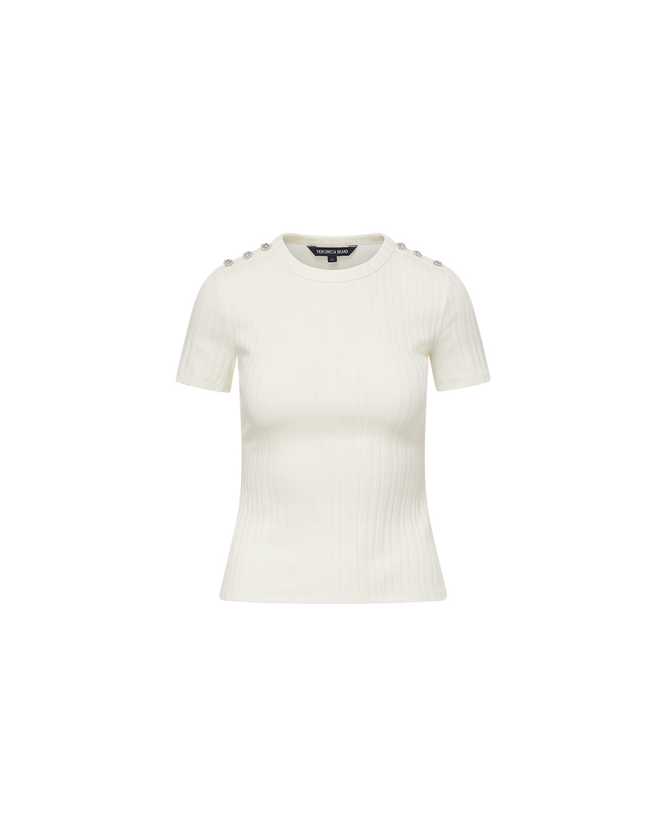 Product details The ribbed tee, elevated. Made from premium stretch cotton, the Draya is defined by a slim fit and rhinestone buttons on the shoulder. Every detail is carefully considered, from the curve of the neckline to the just-right sleeve length. This is the ultimate foundation piece—great on its own or as a layering essential. - 95% Cotton, 5% Elastane - Dry clean only - Style #J2410JY144S0782