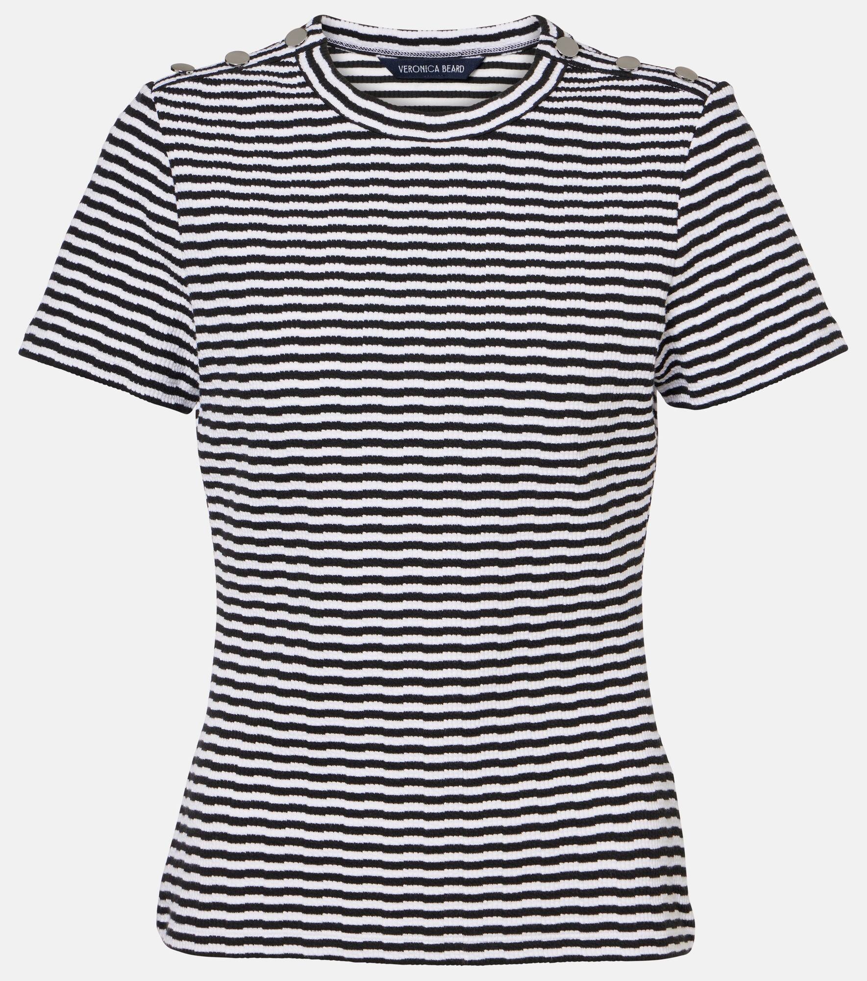 Veronica Beard's low-effort, high-impact separates strike the perfect balance between casual and chic. The ribbed-knit Draya T-shirt features a striped print, round neck, signature crest buttons on the shoulders and a slim fit. Product Details - Material: 56% cotton, 38% polyester, 6% elastane - Care instructions: machine wash cold - Made in Vietnam - Designer color name: Black/White - Item number: P01015920 Size & Fit - True to size - Fitted - Stretchy fabric - Falls to the hip - The model seen in the picture is 178cm-5'10" and wearing a size XS