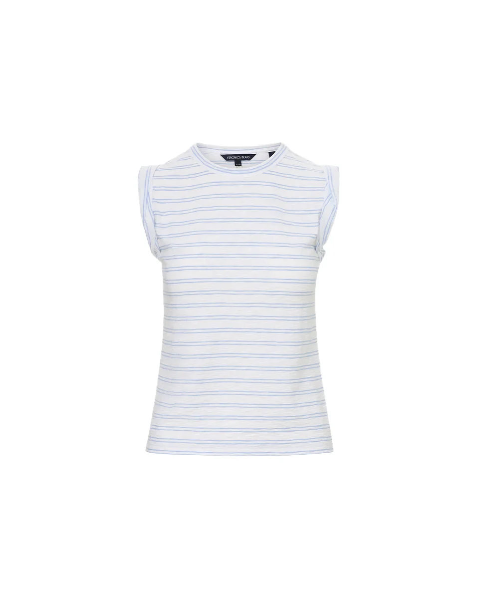 Product details Easy and versatile, the Dree tee is a relaxed muscle tank featuring sky-blue mariner stripes and pre-cuffed armholes. Made from 100% cotton, the soft club jersey feels as effortless and cool as it looks. It’s the perfect match for your favorite VB denim, but pairs just as well with tailored trousers. - 100% Cotton - Machine wash cold with like colors - Style #J2503JY0490314