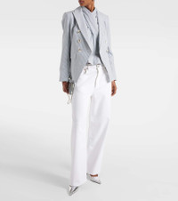 Product Details - Material: 98% cotton, 2% elastane - Care instructions: dry clean - Made in the USA - Designer color name: Blue/ White - Closure: invisible zipper - Lining: 100% polyester - Item number: P00937568 Size & Fit - True to size - Cinched waist - Non-stretchy fabric - Slightly cropped - The model seen in the picture is 178cm-5'10" and wearing a size US 4
