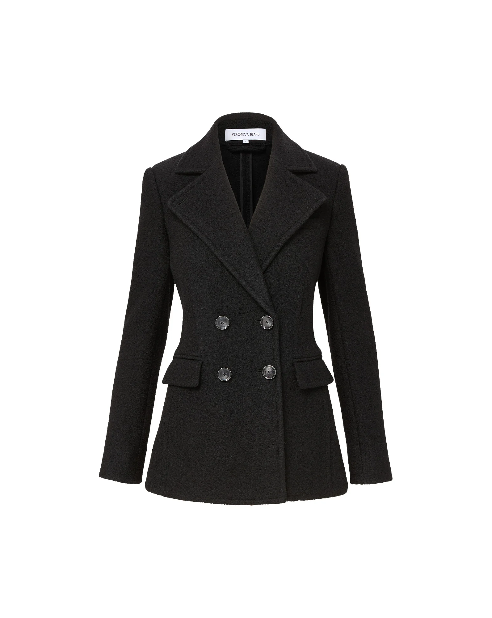 Product details Classic and refined. Crafted from Italian boiled wool, the Duran is thoughtfully designed for a slim, waist-defining fit. An exaggerated peak lapel makes a subtle statement, while flap pockets, functional cuff buttons, and a double-breasted closure add a tailored finish. Layer it over your favorite cold-weather looks for instant polish. - 100% Wool - Fabric country of origin: Italy - Dry clean only - Style #2509OW11311321