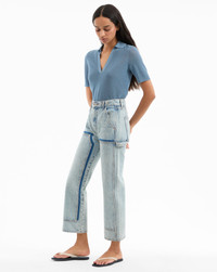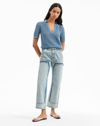 Product details Statement jeans with trend-led details—introducing our updated Dylan, with coolly outlined denim panels on the front for a built-in chaps effect. Made in LA from non-stretch Italian denim, it features the high-rise, straight-leg silhouette you love and a versatile ankle length that works well with flats and heels alike. Pair with a jean jacket for a novel take on double-denim. - 100% Cotton - Made in USA from premium Italian denim - Closure: Button and fly zip - Turn inside out and machine wash cold. Hang to dry. Color transfer may occur. - Style #J25069381306UB