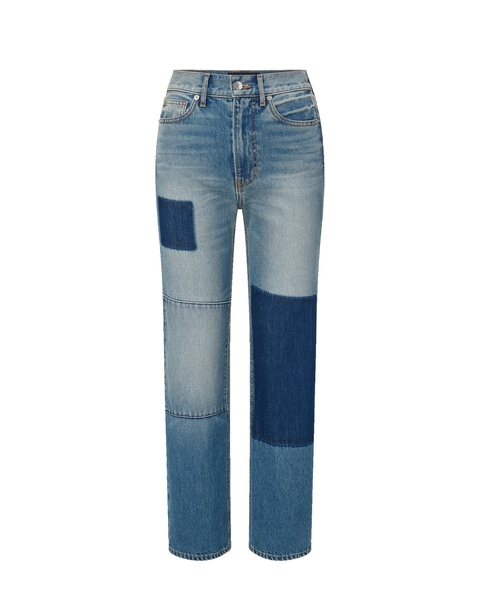 Product details The Dylan—reimagined. In a softly faded classic blue wash, this high-rise, straight-leg jean features contrast patchwork details along the front leg and back pockets. Made in LA from non-stretch Japanese denim, its ankle-length cut pairs effortlessly with everything from flats to heels. Tuck in a white tee for off-duty cool—then add a blazer for instant polish. - 100% Cotton - Made in LA from premium Japanese denim - Turn inside out and wash with cold water. Hang to dry. - Style #J25121681306TL