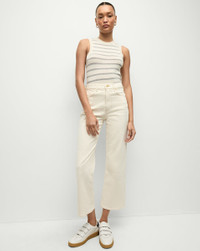 Product details Our classic straight-leg jean. Made in LA from premium Italian denim, the Dylan is a high-rise, boyfriend silhouette with added stretch for ease. The versatile ankle length works well with flats and heels alike. - 98% Cotton, 2% Elastane - Made in USA from premium Italian denim - Turn inside out and machine wash cold. Hang to dry. - Style #J2412D241306EC