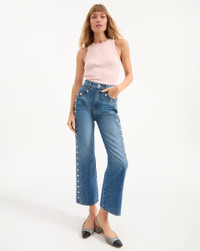Product details The Dylan you know and love—now with silver studs down the sides. Everything else you love about the style remains the same, from the high-rise waist to the ankle-length, straight-leg silhouette. It's great for elevating the everyday, and even chicer at night. - 100% Cotton - Made in USA from premium Italian denim - Turn inside out and machine wash cold. Hang to dry. - Style #J25029381306WY