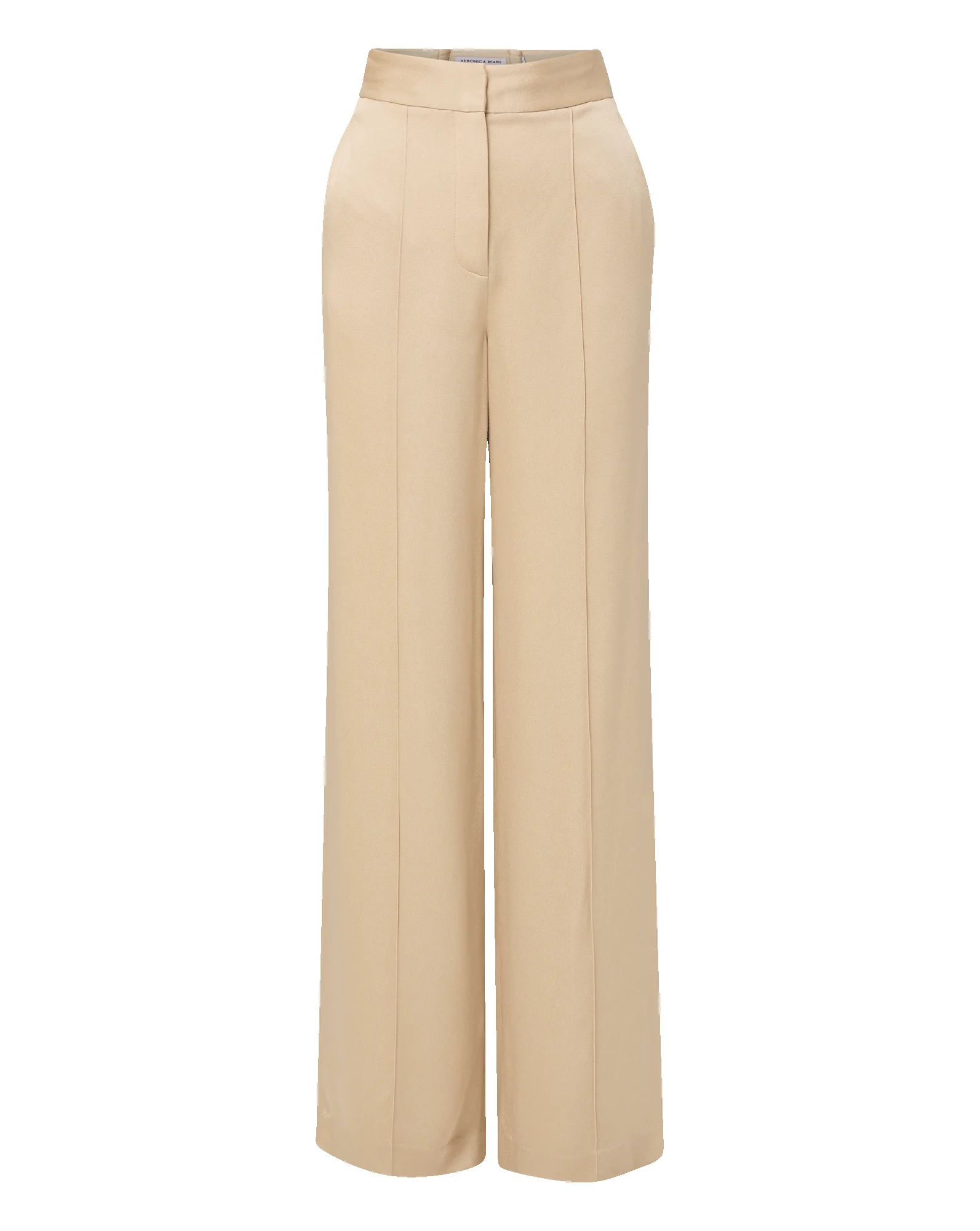 Product details Expertly tailored from a premium stretch blend, the Edia is defined by a fluid wide-leg silhouette. Equal parts relaxed and refined, it features a high waist and pressed creasing down the front for an elongating effect. In versatile khaki, this pairs well with anything and everything, but we especially love styling with the coordinating Long and Lean dickey jacket for a chic matching-set moment. - 72% Acetate, 28% Rayon - Lining: 100% Polyester - Made in the USA - Closure: Zip fly with a hook-and-bar closure - Dry clean only - Style #2506CR0046508