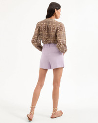 Product details The essential tailored short. Made from a premium stretch blend in lilac, the Elbe features a flattering A-line silhouette and front pleats with an elasticated waist for ease. Side slip and back welt pockets complete the look. Style it with a simple knit or tank top for laid-back ease, or pair it with the matching Miller dickey jacket for a fresh take on spring suiting. - 98% Viscose, 2% Elastane - Lining: 100% Polyester - Made in USA - Dry clean only - Style #2504SU01880271