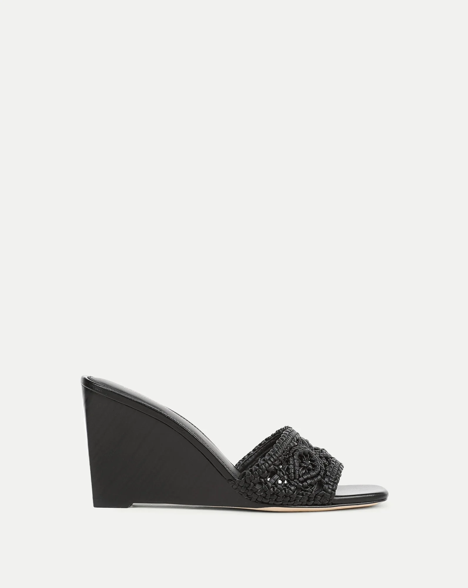 Product details A classic, reimagined with bohemian charm. Set on a stacked wooden wedge heel, the Ellen is a black peep-toe mule featuring a woven leather macrame vamp that adds rich texture. A cushioned footbed ensures all-day ease. Style it with wide-leg jeans or flowy dresses for an easy, polished look. - Leather - Lining: Leather - Heel height: 3.375” - Store in a cool, dry place inside a dust bag - Clean under the supervision of a specialist - Style #J8337L1001