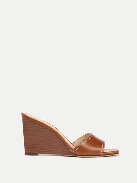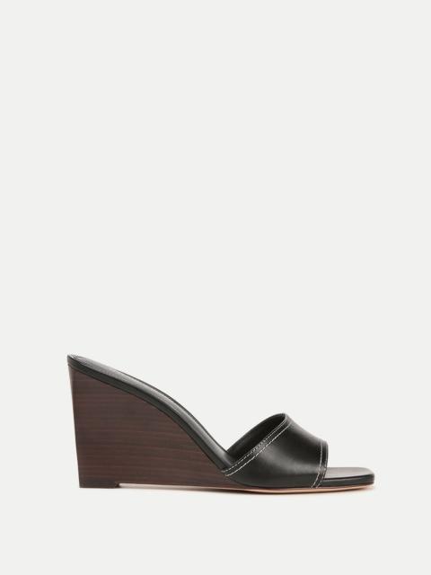 Timeless, understated, chic—the Ellen sandal is a peep-toe mule with a stacked wooden wedge heel. Crafted from smooth leather with contrast stitching, it has an on-trend Nineties feel. The cushioned footbed and slip-on style ensure easy wear, and the polished silhouette pairs well with dresses and jeans alike. DETAILS & FIT - Leather - 3.25” heel - Store in a cool, dry place inside dust bag - Clean under the supervision of a specialist - Style # J0044L1